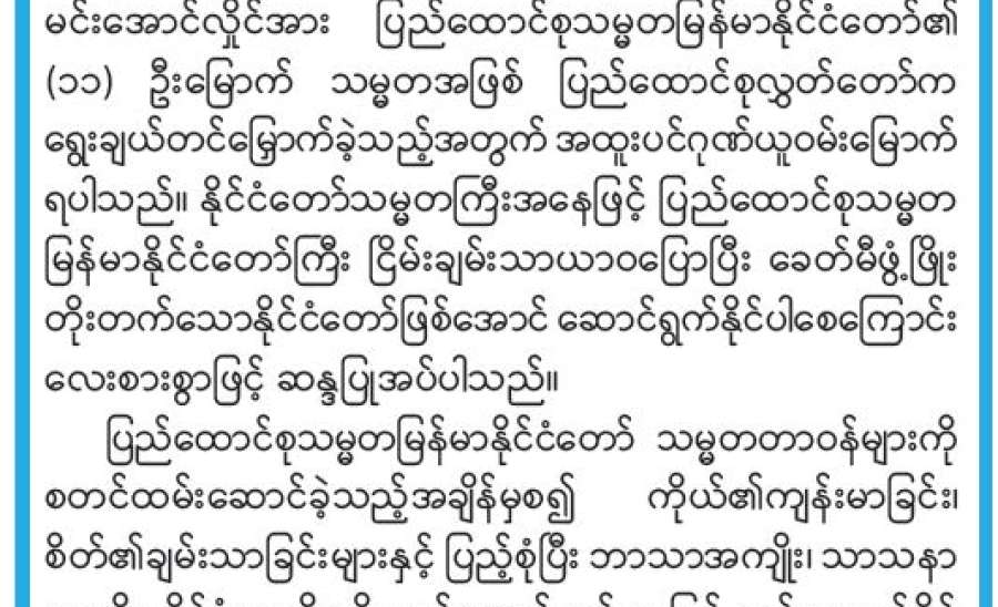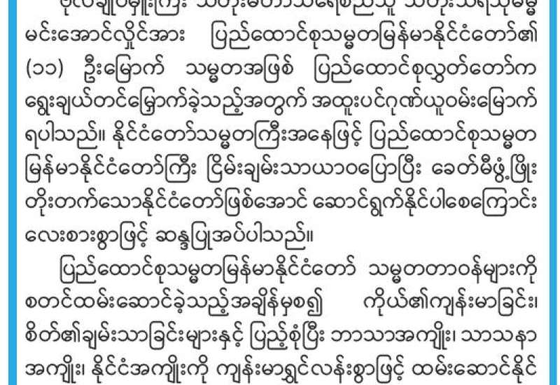 ပြည်ထောင်စုမြန်မာနိုင်ငံတော်ကြီးသည် လွတ်လပ်ရေးရပြီးချိန်ကတည်းက နိုင်ငံရေးလှိုင်းတံပိုးရိုက်ခတ်မှုအခက်အခဲမျိုးစုံကြားမှ ကြမ်းတမ်းစွာဖြတ်သန်းလာခဲ့ရသည်။ ခေတ်အဆက်ဆက်အစိုးရများက နိုင်ငံတည်ငြိမ်အေးချမ်းရေး၊ ဖွံ့ဖြိုးတိုးတက်ရေးကို ကြိုးပမ်းဆောင်ရွက်ခဲ့သော်လည်း အဖျက်အမှောင့်အမျိုးမျိုးတို့ နှောင့်ယှက်ဖျက်ဆီးမှုများကြောင့် တိုင်းပြည်တည်ငြိမ်အေးချမ်းရေး၊ ဖွံ့ဖြိုးတိုးတက်ရေးတို့တွင် နှောင့်နှေးကြန့်ကြာမှုများနှင့် ရင်ဆိုင်ကြုံတွေ့ခဲ့ကြရသည်။