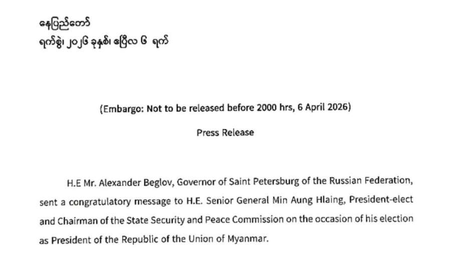 Apr 06, 2026ဧပြီလ ၃ ရက်မှာ ပြည်ပအခြေစိုက် သတင်းဌာနတစ်ခုဖြစ်တဲ့ CNA သတင်းဌာနက မြန်မာနိုင်ငံရဲ့ နိုင်ငံရေးဖြစ်ပေါ်တိုးတက်မှုများနဲ့ပတ်သက်ပြီး အရှိတရားကို မျက်ကွယ်ပြုကာ “မြန်မာစစ်ခေါင်းဆောင် ဦးမင်းအောင်လှိုင်အား စစ်တပ်လိုလားသော လွှတ်တော်ကသမ္မတအဖြစ် ရွေးချယ်တင်မြှောက်” (Myanmar junta chief Min Aung Hlaing elected president by pro-military parliament) ဆိုတဲ့ ခေါင်းစဉ်နဲ့ ‘‘၂၀၂၁ ခုနှစ်၊ ဖေဖော်ဝါရီလတွင် အရပ်သားအစိုးရထံမှ အာဏာသိမ်းယူခဲ့ကြောင်း၊ ၂၀၂၅ ရွေးကောက်ပွဲသည် အဓိကအတိုက်အခံအင်အားစုများ ပါဝင်ခွင့်မရဘဲ ကျင်းပခဲ့ခြင်းဖြစ်ပြီး နိုင်ငံတကာအသိုင်းအဝိုင်းကလည်း ထိုရွေးကောက်ပွဲကို “တရားမျှတမှုမရှိသောပြပွဲ” အဖြစ် ဝေဖန်ရှုတ်ချလျက်ရှိကြောင်း၊ အင်အားကြီးမားသော ပြည်ထောင်စုကြံ့ခိုင်ရေးနှင့် ဖွံ့ဖြိုးရေးပါတီမှ လွှတ်တော်ကိုယ်စားလှယ်များနှင့် စစ်တပ်မှ ခန့်အပ်ထားသော တပ်မတော်သား လွှတ်တော် ကိုယ်စားလှယ်များပူးပေါင်းကာ ဦးမင်းအောင်လှိုင်ကို ထောက်ခံခဲ့ကြတာကြောင့် မဲအပြတ်အသတ်ဖြင့် အနိုင်ရရှိခဲ့ခြင်းဖြစ်ကြောင်း” စသည်ဖြင့် မဟုတ်မမှန်ရေးသားဖော်ပြခဲ့တာကို တွေ့ရပါတယ်။