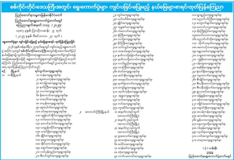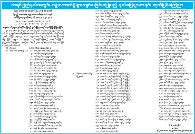 ကရင်ပြည်နယ်အတွင်း ရွေးကောက်ပွဲများကျင်းပခြင်းမပြုမည့် နယ်မြေများစာရင်း ထုတ်ပြန်ကြေညာ