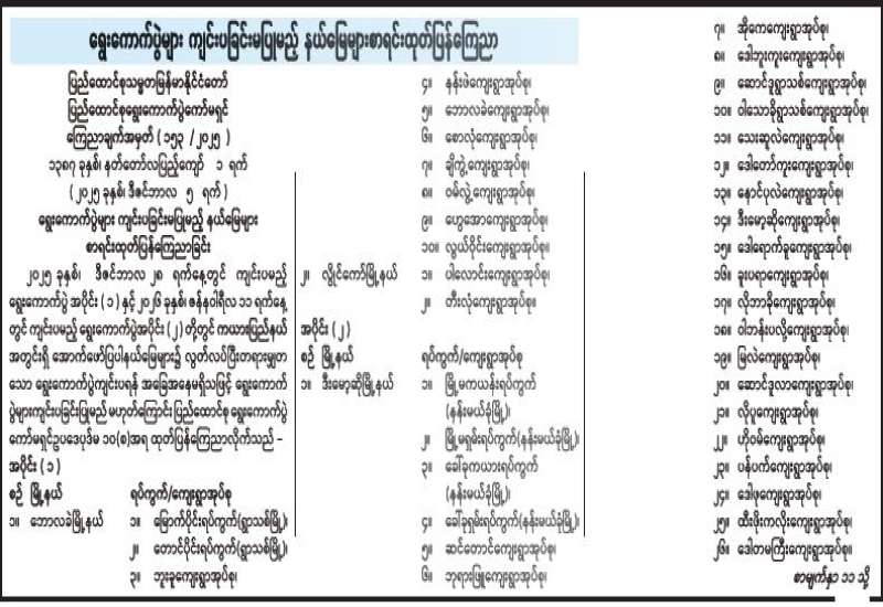 ရွေးကောက်ပွဲများ ကျင်းပခြင်းမပြုမည့် နယ်မြေများ စာရင်းထုတ်ပြန်ကြေညာ