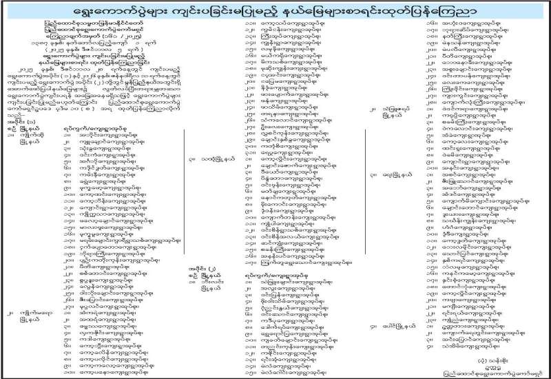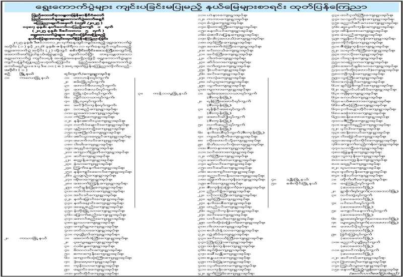 ရွေးကောက်ပွဲများ ကျင်းပခြင်းမပြုမည့် နယ်မြေများစာရင်းထုတ်ပြန်ကြေညာ