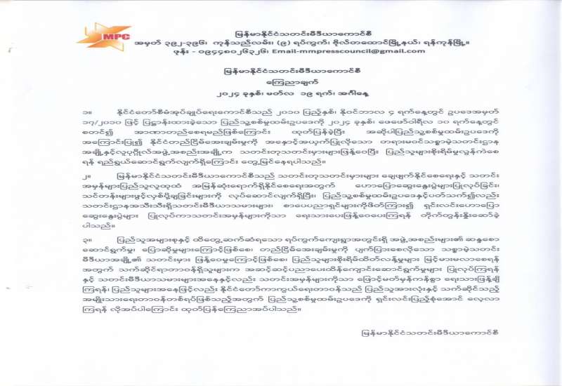 ပြန်ကြားရေးဝန်ကြီးဌာနသည် အရေးကြီးကုန်စည်နှင့်ဝန်ဆောင်မှုဥပဒေ ပုဒ် ၄ ပုဒ်မခွဲ (ဂ) အရ ပြည်ထောင်စုအစိုးရအဖွဲ့က အပ်နှင်းသည့် အမိန့်ထုတ်ပြန်နိုင်ခွင့်ကို ကျင့်သုံး၍ ဆက်သွယ်ရေးကွန်ရက်ကို အသုံးပြုကာ ရုပ်ရှင်ကားထုတ်လွှင့်ပြသခြင်းလုပ်ငန်း လုပ်ကိုင်ခွင့် အမိန့်ကို ၂၀၂၄ ခုနှစ်၊ မတ်လ ၁၃ ရက်နေ့တွင် ထုတ်ပြန်ကြေညာခဲ့သည်။