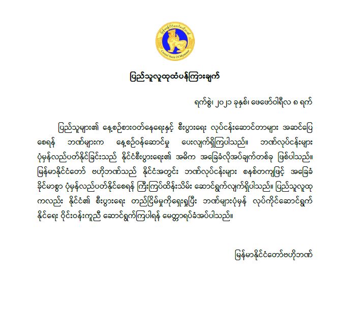 ပြည်သူလူထုထံပန်ကြားချက်