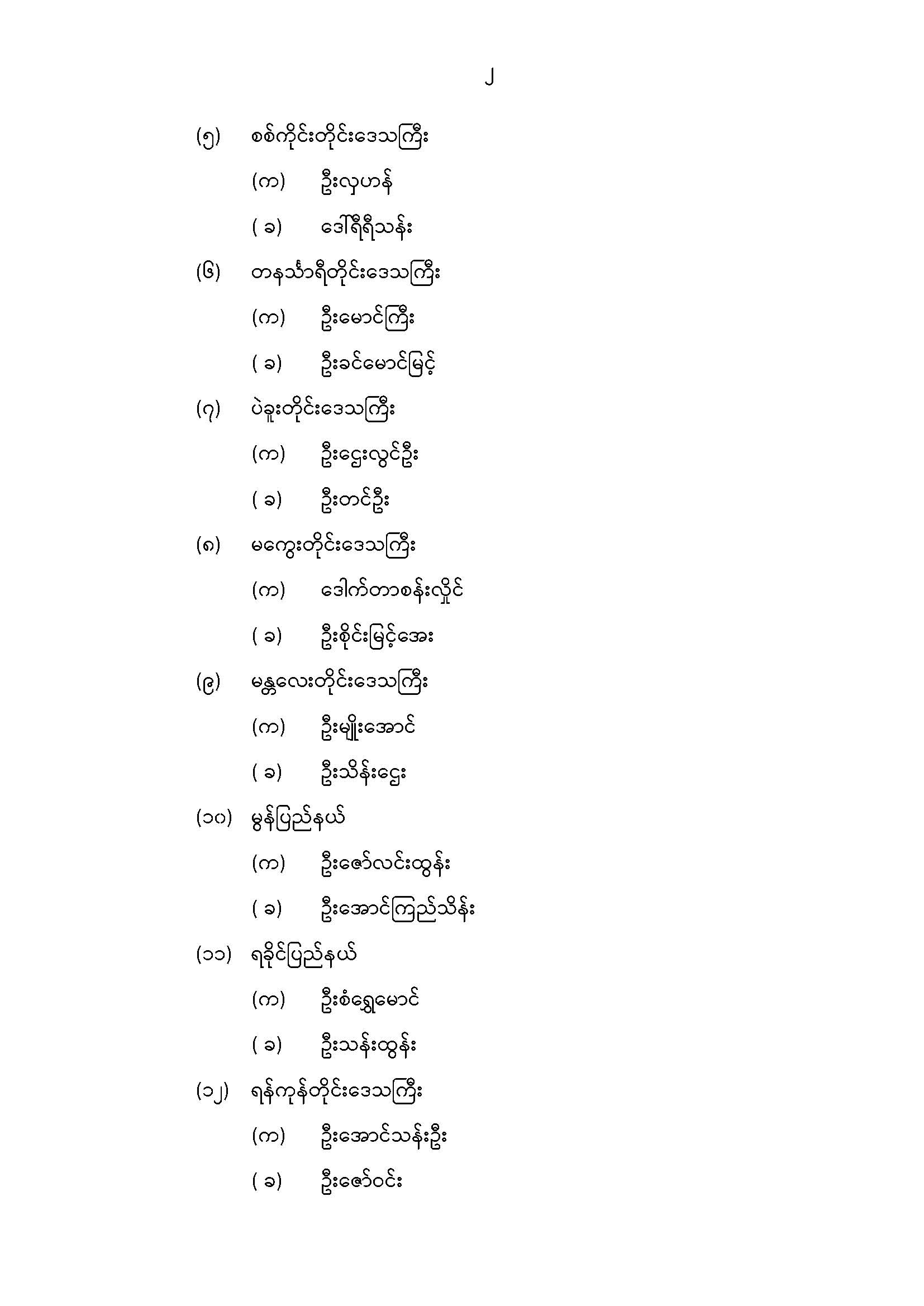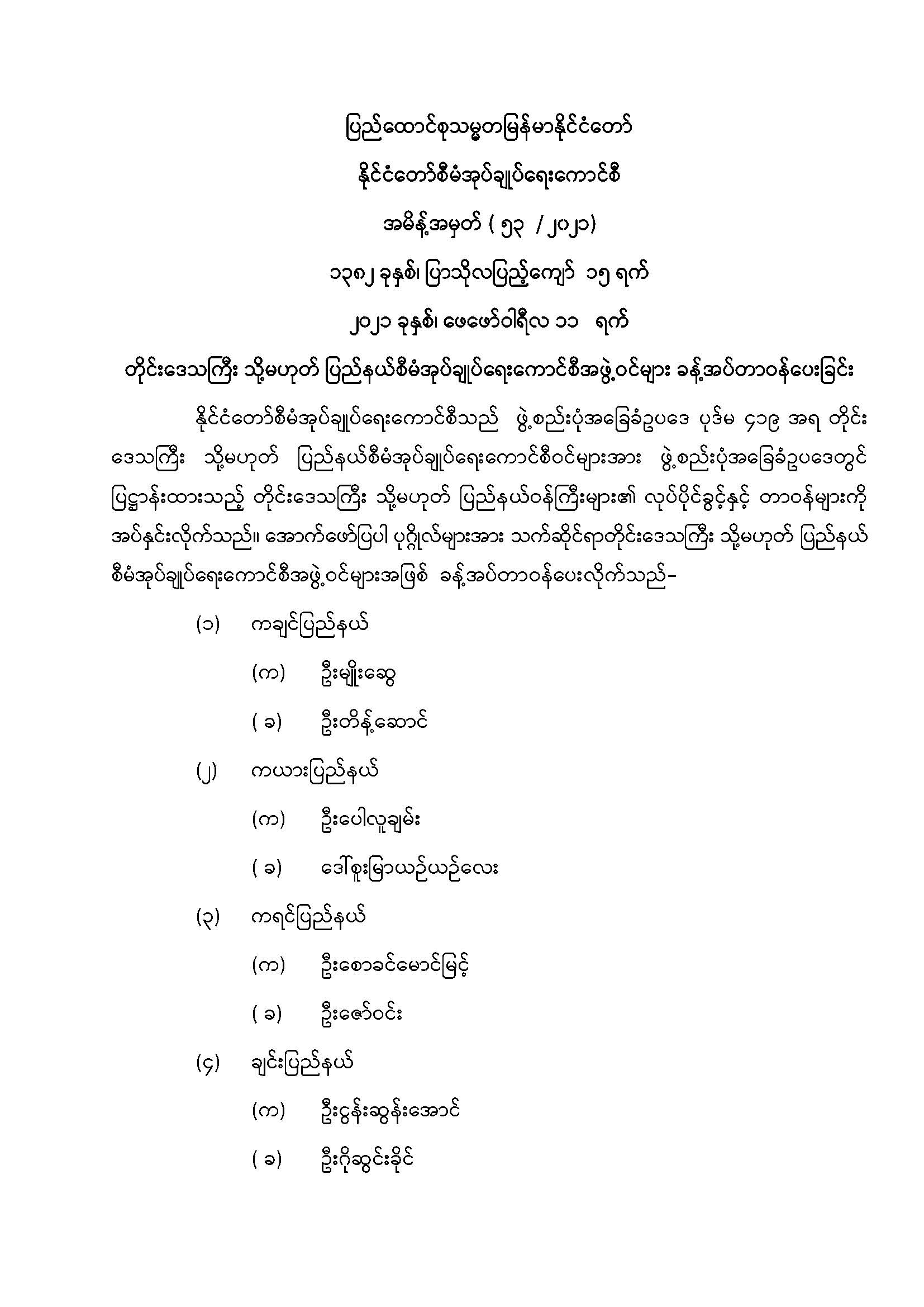တိုင်းဒေသကြီး သို့မဟုတ် ပြည်နယ်စီမံအုပ်ချုပ်ရေးကောင်စီအဖွဲ့ဝင်များ ခန့်အပ်တာဝန်ပေးခြင်း