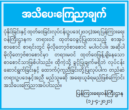 ဝန်ကြီးဌာန ကြေညာချက်များ