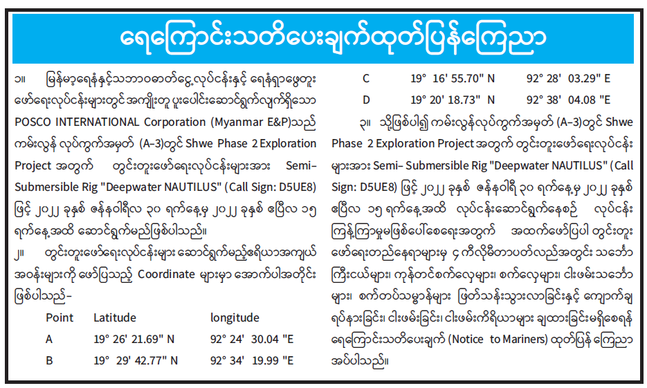 ရေကြောင်းသတိပေးချက် ထုတ်ပြန်ကြေညာ