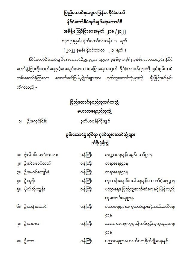 ပြည်ထောင်စုသမ္မတမြန်မာနိုင်ငံတော် နိုင်ငံတော်စီမံအုပ်ချုပ်ရေးကောင်စီ အမိန့်ကြော်ငြာစာအမှတ် ၂၁၈ /၂၀၂၂ 11/23/2022