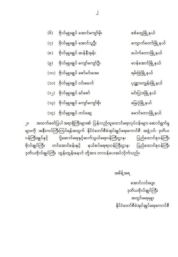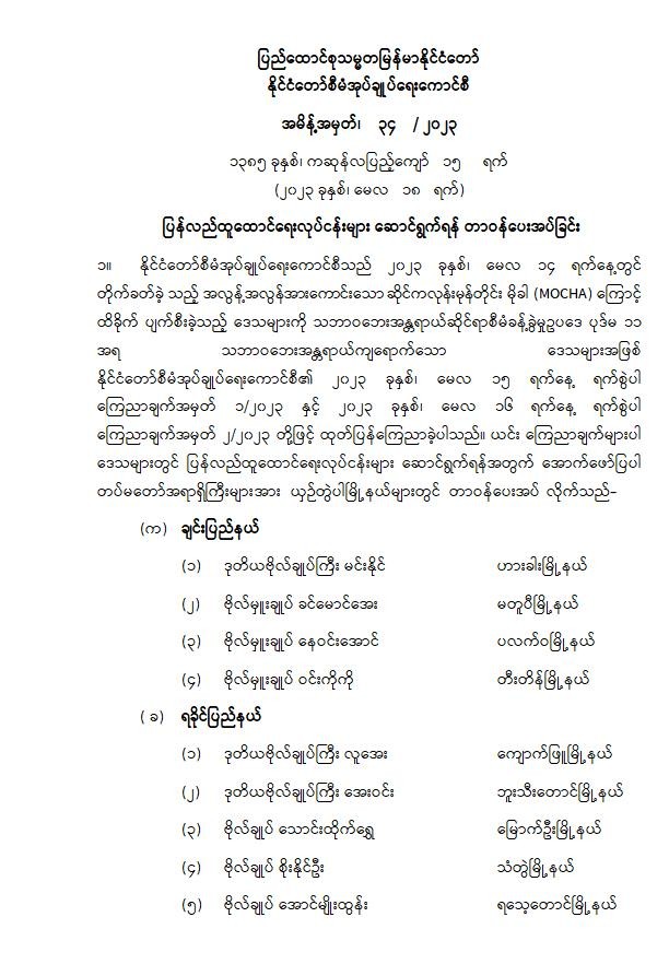ပြန်လည်ထူထောင်ရေးလုပ်ငန်းများ ဆောင်ရွက်ရန် တာဝန်ပေးအပ်ခြင်း