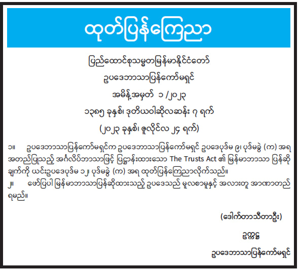 ဥပဒေဘာသာပြန်ကော်မရှင်၏ ထုတ်ပြန်ချက်