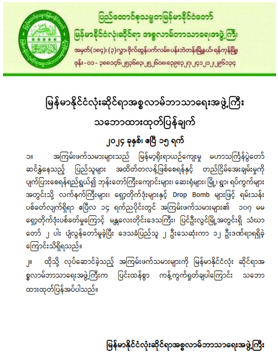 မြန်မာနိုင်ငံလုံးဆိုင်ရာအစ္စလာမ်ဘာသာရေးအဖွဲ့ကြီး သဘောထားထုတ်ပြန်ချက်