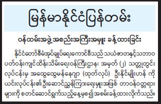 နိုင်ငံတော်စီမံအုပ်ချုပ်ရေးကောင်စီသည် သယံဇာတနှင့်သဘာဝ ပတ်ဝန်းကျင်ထိန်းသိမ်းရေးဝန်ကြီးဌာန၊ အမှတ် (၂) သတ္တုတွင်းလုပ်ငန်းမှ အထွေထွေမန်နေဂျာ (ထုတ်လုပ်) ဦးနိုင်မျိုးဟန်ကို ယင်းလုပ်ငန်း၏ ဦးဆောင်ညွှန်ကြားရေးမှူးအဖြစ် တာဝန်ဝတ္တရားများကို စတင်ဆောင်ရွက်သည့်နေ့မှစ၍ အစမ်းခန့်ထားလိုက်သည်။