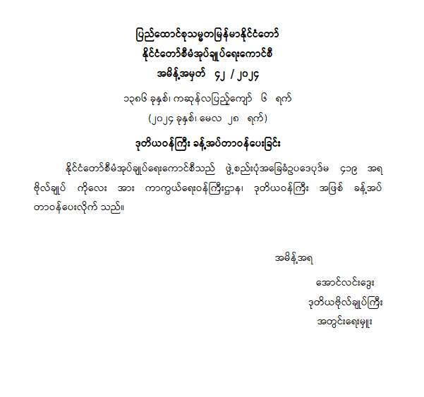 ဒုတိယဝန်ကြီး ခန့်အပ်တာဝန်ပေးခြင်း