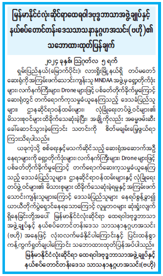 မြန်မာနိုင်ငံလုံးဆိုင်ရာထေရဝါဒဗုဒ္ဓဘာသာအဖွဲ့ချုပ်နှင့် နယ်စပ်တောင်တန်းဒေသသာသနာနုဂ္ဂဟအသင်း (ဗဟို) ၏ သဘောထားထုတ်ပြန်ချက်