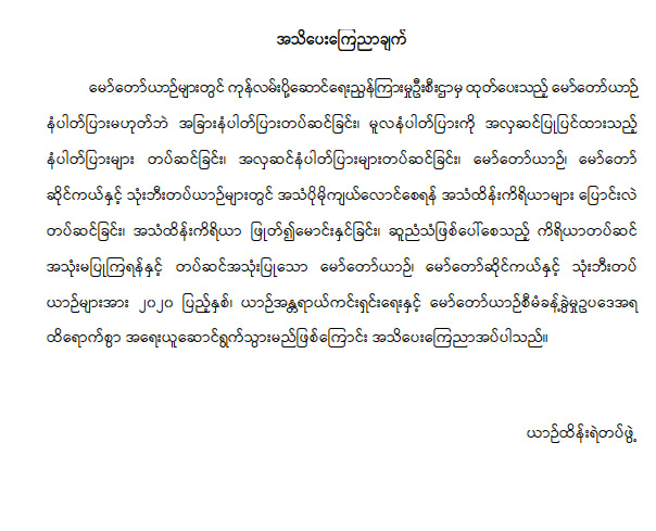 ဝန်ကြီးဌာန ကြေညာချက်များ