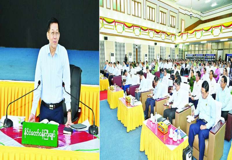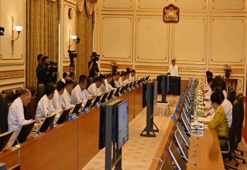 ပြည်ထောင်စုအစိုးရအဖွဲ့အစည်းအဝေး အမှတ်စဉ် (၆/၂၀၂၄) ကို ယနေ့မွန်းလွဲပိုင်းတွင် နေပြည်တော်ရှိ နိုင်ငံတော်စီမံအုပ်ချုပ်ရေးကောင်စီဥက္ကဋ္ဌရုံး အစည်းအဝေးခန်းမ၌ ကျင်းပရာ နိုင်ငံတော်စီမံအုပ်ချုပ်ရေးကောင်စီဥက္ကဋ္ဌ နိုင်ငံတော်ဝန်ကြီးချုပ် ဗိုလ်ချုပ်မှူးကြီး မင်းအောင်လှိုင် တက်ရောက်အမှာစကားပြောကြားသည်