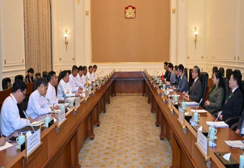 မြန်မာနိုင်ငံနှင့်တရုတ်နိုင်ငံ နှစ်နိုင်ငံတွေ့ဆုံဆွေးနွေးပွဲကို ယနေ့ညနေပိုင်းတွင် နေပြည်တော်ရှိ နိုင်ငံတော်စီမံအုပ်ချုပ်ရေးကောင်စီဥက္ကဋ္ဌရုံး၊ သံတမန်ဆောင် ဧည့်ခန်းမ၌ ကျင်းပပြုလုပ်သည်။