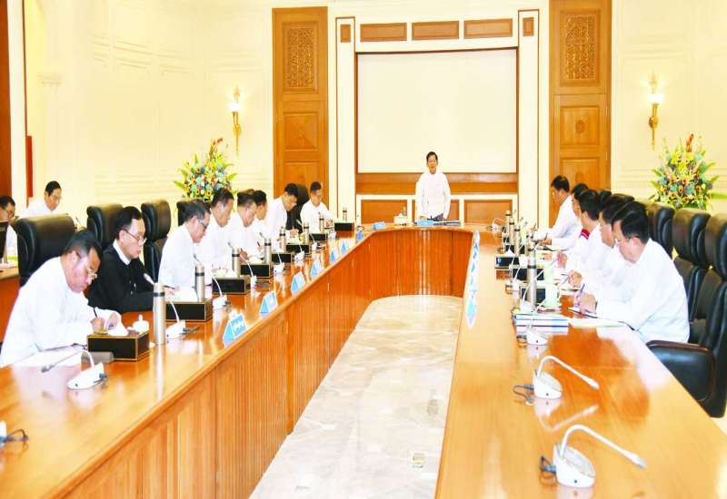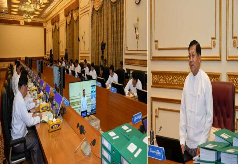 ပြည်ထောင်စုအစိုးရအဖွဲ့အစည်းအဝေး အမှတ်စဉ် (၅/၂၀၂၃)ကို ယနေ့ မွန်းလွဲပိုင်းတွင် နေပြည်တော်ရှိ နိုင်ငံတော်စီမံအုပ်ချုပ်ရေးကောင်စီဥက္ကဋ္ဌရုံး အစည်းအဝေးခန်းမ၌ကျင်းပရာ နိုင်ငံတော်စီမံအုပ်ချုပ်ရေးကောင်စီဥက္ကဋ္ဌ နိုင်ငံတော်ဝန်ကြီးချုပ် ဗိုလ်ချုပ်မှူးကြီး မင်းအောင်လှိုင် တက်ရောက်အမှာစကားပြောကြားသည်။