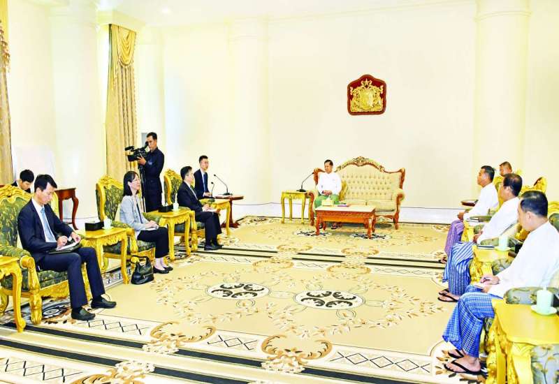 နိုင်ငံတော်စီမံအုပ်ချုပ်ရေးကောင်စီဥက္ကဋ္ဌ နိုင်ငံတော်ဝန်ကြီးချုပ် ဗိုလ်ချုပ်မှူးကြီး မင်းအောင်လှိုင်ထံသို့ ယနေ့နံနက်ပိုင်းတွင် ကျင်းပပြုလုပ်ခဲ့သည့် တစ်နိုင်ငံလုံးပစ်ခတ်တိုက်ခိုက်မှုရပ်စဲရေးသဘောတူစာချုပ် (NCA) (၈)နှစ်မြောက်နှစ်ပတ်လည်နေ့ အခမ်းအနားသို့တက်ရောက်ခဲ့သော တရုတ်နိုင်ငံခြားရေးဝန်ကြီးဌာန၊ အာရှရေးရာ အထူးကိုယ်စားလှယ် Mr. Deng Xijun ဦးဆောင်သည့် ကိုယ်စားလှယ်အဖွဲ့က ယနေ့မွန်းလွဲပိုင်းတွင် နေပြည်တော်ရှိ နိုင်ငံတော်စီမံအုပ်ချုပ်ရေးကောင်စီဥက္ကဋ္ဌရုံး၊ ဧည့်ခန်းမ၌ လာရောက်ဂါရဝပြုတွေ့ဆုံသည်။
