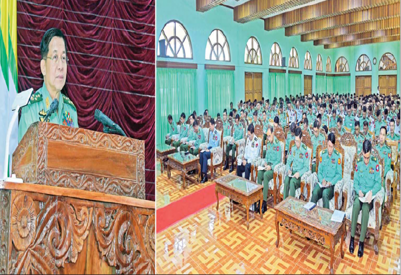 နိုင်ငံတော်စီမံအုပ်ချုပ်ရေးကောင်စီဥက္ကဋ္ဌ တပ်မတော်ကာကွယ်ရေးဦးစီးချုပ် ဗိုလ်ချုပ်မှူးကြီး မင်းအောင်လှိုင်သည် ယနေ့မွန်းလွဲပိုင်းတွင် အနောက်မြောက်တိုင်း စစ်ဌာနချုပ်၊ မုံရွာတပ်နယ်မှ အရာရှိ၊ စစ်သည် မိသားစုများအား တိုင်းစစ်ဌာနချုပ်၊ ဇေယျာသီရိခန်းမ၌ တွေ့ဆုံအမှာစကား ပြောကြားသည်။