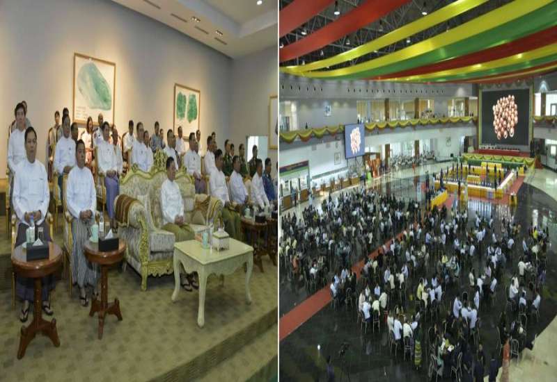 ၂၀၂၃ ခုနှစ်၊ (၅၈)ကြိမ်မြောက် မြန်မာ့ကျောက်မျက်ရတနာပြပွဲ ဖွင့်ပွဲအခမ်းအနားကို ယနေ့နံနက်ပိုင်းတွင် နေပြည်တော်ရှိ မဏိရတနာကျောက်စိမ်းခန်းမ၌ ကျင်းပရာ နိုင်ငံတော်စီမံအုပ်ချုပ်ရေးကောင်စီဥက္ကဋ္ဌ နိုင်ငံတော်ဝန်ကြီးချုပ် ဗိုလ်ချုပ်မှူးကြီး မင်းအောင်လှိုင် တက်ရောက်ချီးမြှင့်သည်။