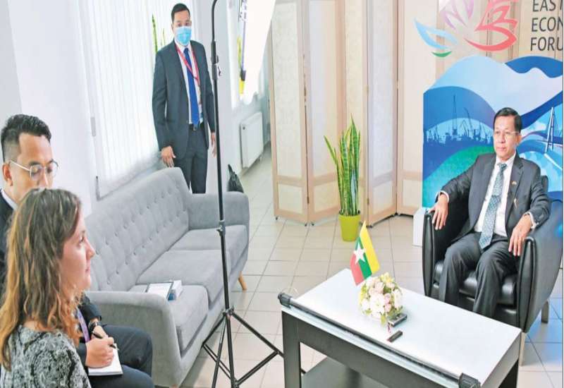 နိုင်ငံတော်စီမံအုပ်ချုပ်ရေးကောင်စီဥက္ကဋ္ဌ နိုင်ငံတော်ဝန်ကြီးချုပ် ဗိုလ်ချုပ်မှူးကြီး မင်းအောင်လှိုင် သည် ရုရှားဖက်ဒရေးရှင်းနိုင်ငံ၊ Rossiya Segodnya သတင်းအေဂျင်စီ၊ RIA သတင်းဌာနမှ အထူးသတင်းထောက် Ms. Kukushkina Tatiana အား စက်တင်ဘာ ၆ ရက်၌ ဗလာဒီဗော့စတော့ခ်မြို့ Far Eastern Federal University (FEFU)၌ တွေ့ဆုံ၍ သိရှိလိုသည့် မေးမြန်းမှုများအား လက်ခံဖြေကြားခဲ့သည်။ အဆိုပါ မေးမြန်းမှုများနှင့် ဖြေကြားမှုများကို ဖော်ပြလိုက်ရပါသည် -