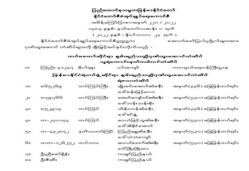 ကိုဗစ်-၁၉ ရောဂါပိုးကူးစက်ပျံ့နှံ့မှုကို ဆက်လက်ထိန်းချုပ်ဆောင်ရွက်ရန် လိုအပ်ပါသဖြင့် ပြည်ထောင်စုအဆင့်အဖွဲ့အစည်းများ၊ ပြည်ထောင်စုဝန်ကြီးဌာနများမှ ကိုဗစ်-၁၉ ရောဂါကာကွယ်၊ ထိန်းချုပ်၊ တားဆီးရေးအတွက် ၂၀၂၂ ခုနှစ်၊ နိုဝင်ဘာလ ၃၀ ရက်နေ့အထိ ထုတ်ပြန်ထားသော ပြည်သူသို့ပန်ကြားချက်၊ အမိန့်၊ အမိန့်ကြော်ငြာစာ၊ ညွှန်ကြားချက်များ (ဖြေလျှော့ပေးမည့် ကိစ္စရပ်များမပါ)အား ၂၀၂၂ ခုနှစ်၊ ဒီဇင်ဘာလ ၃၁ ရက်နေ့အထိ ရက်တိုးမြှင့် သတ်မှတ်ဆောင်ရွက်ထားပါကြောင်း အသိပေးကြေညာအပ်ပါသည်။