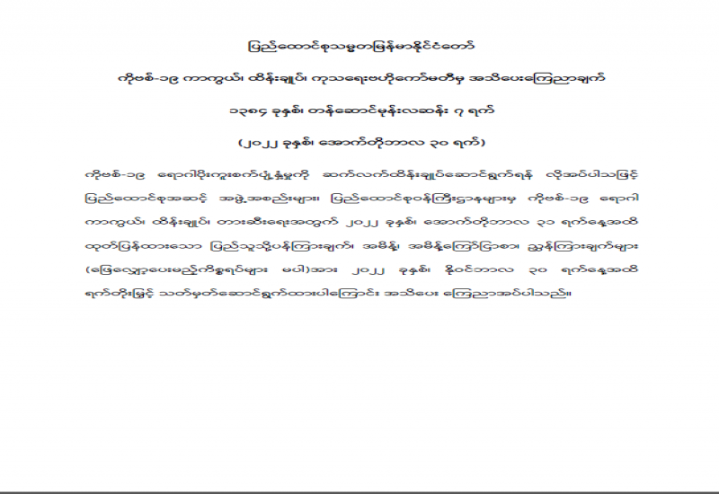 ကိုဗစ်-၁၉ ကာကွယ်၊ ထိန်းချုပ်၊ ကုသရေးဗဟိုကော်မတီမှ အသိပေးကြေညာချက်