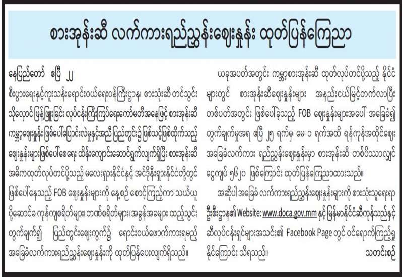အခြားရုံးသုံးပစ္စည်းနှင့် ရုံးသုံးစက်ကိရိယာများ ဝယ်ယူရန် အိတ်ဖွင့်တင်ဒါခေါ်ယူခြင်း