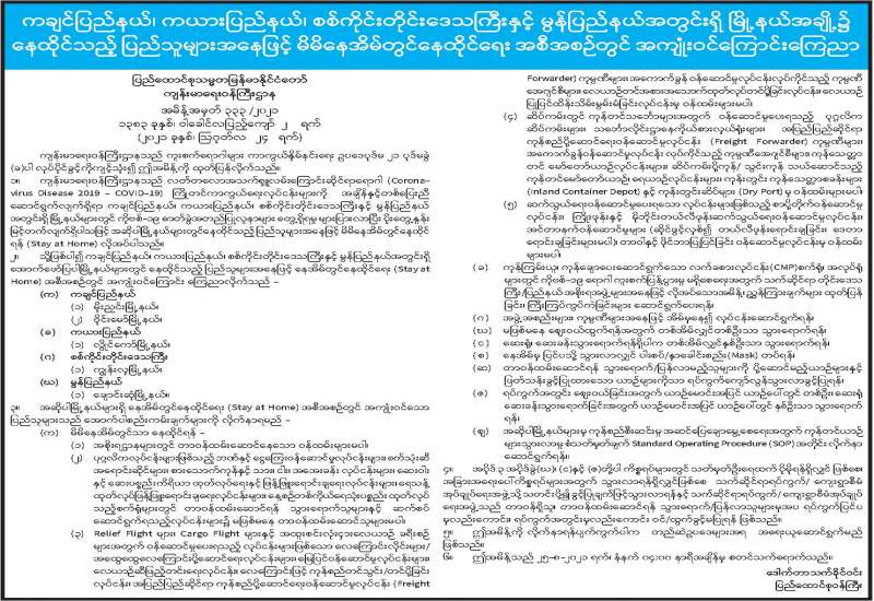 Coronavirus Disease 2019 (COVID-19) ကာကွယ်၊ ထိန်းချုပ်၊ ကုသရေးဗဟိုကော်မတီ အသိပေးကြေညာချက်