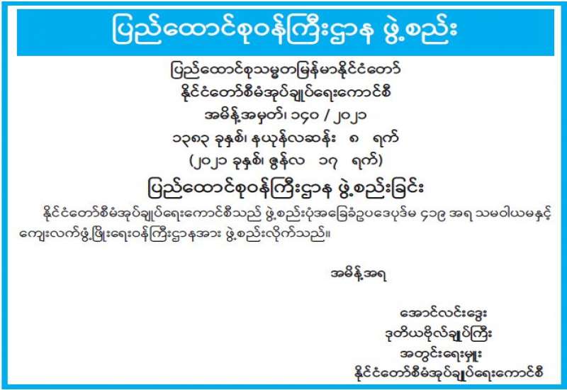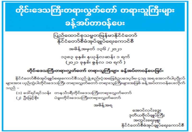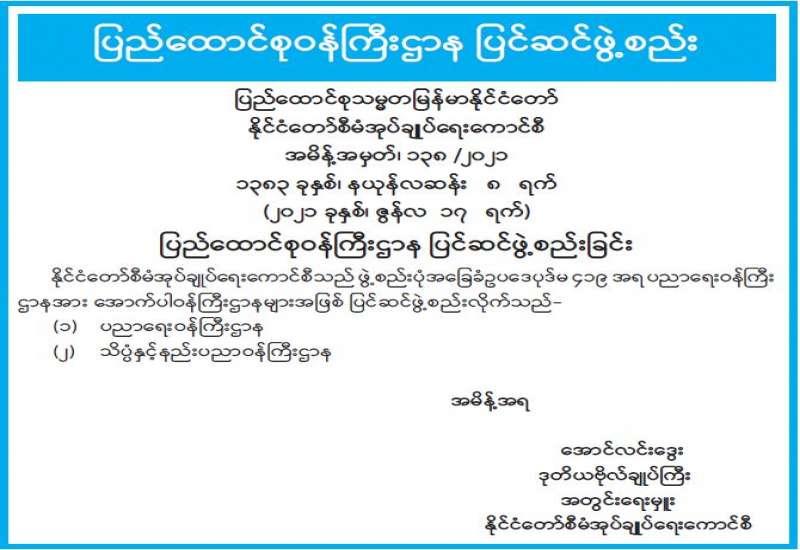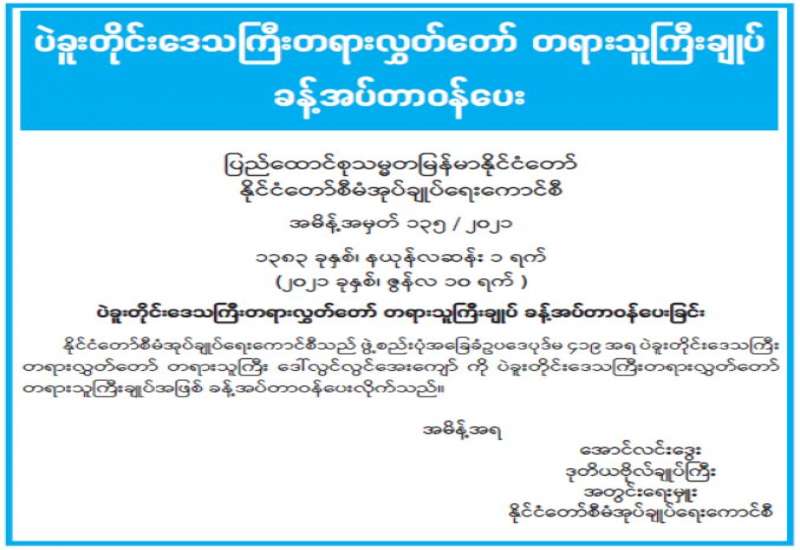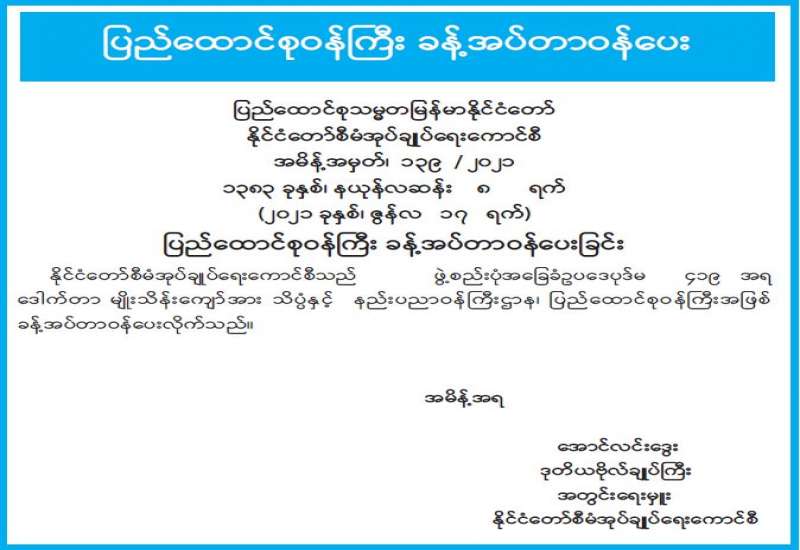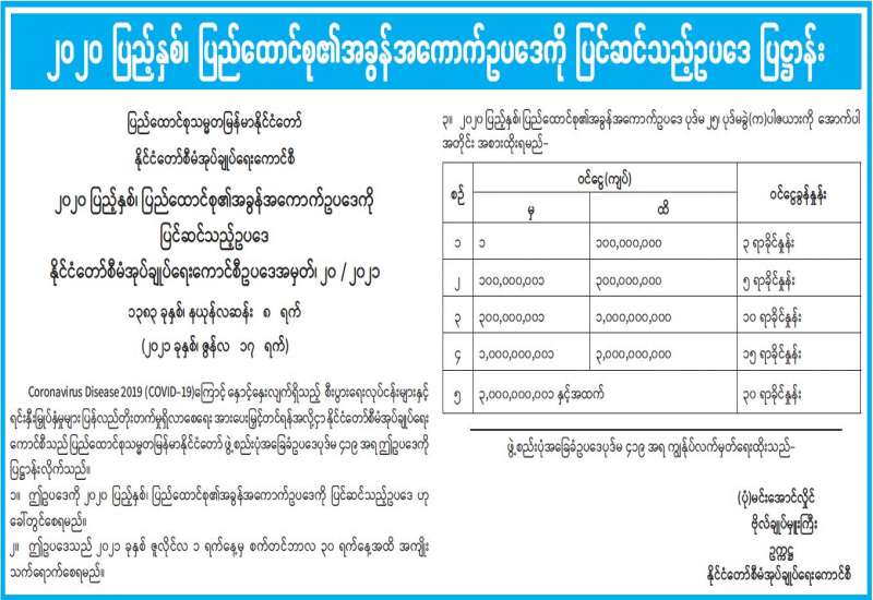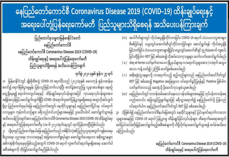 နေပြည်တော်ကောင်စီ Coronavirus Disease 2019 (Covid-19) ထိန်းချုပ်ရေးနှင့် အရေးပေါ်တုံ့ပြန်ရေးကော်မတီ ပြည်သူများ သိရှိစေရန် အသိပေးပန်ကြားချက်