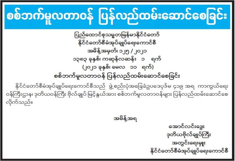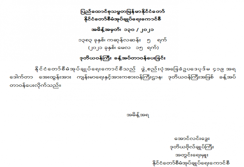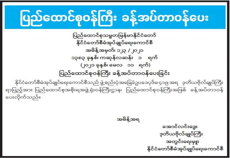 ၁။ ပြည်ထောင်စု‌ရွေးကောက်ပွဲကော်မရှင်သည် ၂၀၂၀ ပြည့်နှစ် နိုဝင်ဘာလ ၈ ရက်နေ့တွင် ကျင်းပပြုလုပ်သည့် ပါတီစုံဒီမိုကရေစီအထွေထွေရွေးကောက်ပွဲနှင့်စပ်လျဉ်း၍ ရှမ်းပြည်နယ်၊ မိုင်းတုံမြို့နယ်၊ မူဆယ်မြို့နယ်၊ ကွတ်ခိုင်မြို့နယ်၊ မိုင်းခတ်မြို့နယ်၊ ကျိုင်းတုံမြို့နယ်၊ မိုင်းရယ်မြို့နယ်နှင့် ဆီဆိုင်မြို့နယ်တို့၏ မဲဆန္ဒရှင်စာရင်းများနှင့် ဆန္ဒမဲလက်မှတ်များ ထုတ်ယူ/ ရရှိ/ သုံးစွဲ/ လက်ကျန် မြေပြင်အခြေအနေများကို စစ်ဆေးခဲ့သည်။