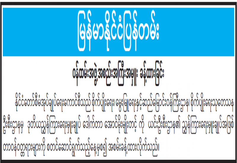 ဝန်ထမ်းအဖွဲ့အစည်းအကြီးအမှူးများ ပြောင်းရွှေ့ခန့်ထားခြင်းနှင့် ဝန်ထမ်းအဖွဲ့အစည်းအကြီးအမှူးများ ခန့်ထားခြင်း