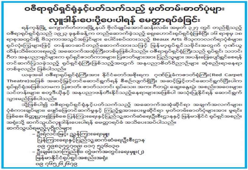 ရန်ကုန်မြို့ ကျောက်တံတားမြို့နယ် ဗိုလ်ချုပ်အောင်ဆန်းလမ်း အမှတ် ၃၂၇ တွင် တည်ရှိသည့် ဝဇီရာရုပ်ရှင်ရုံသည် ၁၉၂၃ ခုနှစ်ခန့်က တည်ဆောက်ခဲ့သည့် ရှေးဟောင်းရုပ်ရှင်ရုံဖြစ်ပြီး ၁၆ ရာစုမှ ၁၈ ရာစုအတွင်းရှိ ဗိသုကာအသွင်အပြင်များ ပေါင်းစပ်ထားသည့် Beaux Arts ဗိသုကာလက်ရာပုံစံများ၊ ရုပ်လုံးကြွများဖြင့် တန်ဆာဆင်တည်ဆောက်ထားသဖြင့် မြန်မာ့ရုပ်ရှင်သမိုင်းအတွက် ဂုဏ်ယူထိန်းသိမ်းထားရမည့် အဆောက်အအုံကြီးတစ်ခုဖြစ်ပါသည်။ ဝဇီရာရုပ်ရှင်ရုံကြီးသည် ရုပ်ရှင်၊ သဘင်၊ ဂီတ အနုပညာရှင်များက ရုပ်ရှင်ဇာတ်ကားများ၊ ပြဇာတ်များအား ပြည်သူများ အပန်းဖြေပျော်ရွှင်စေရန် တင်ဆက်ပြသခဲ့သည့် ရုပ်ရှင်ရုံကြီးဖြစ်သည့်အတွက် အနုပညာစိတ်ဝိညာဉ်များ ဆုံစည်းရာနေရာတစ်ခုလည်း ဖြစ်ပါသည်။