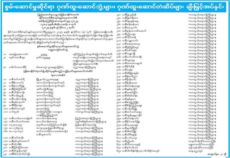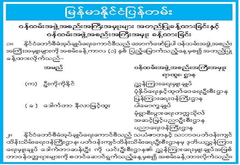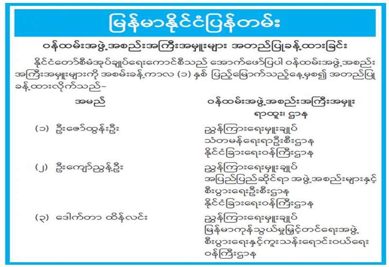 ဝန်ထမ်းအဖွဲ့အစည်းအကြီးအမှူးများ အတည်ပြုခန့်ထားခြင်း