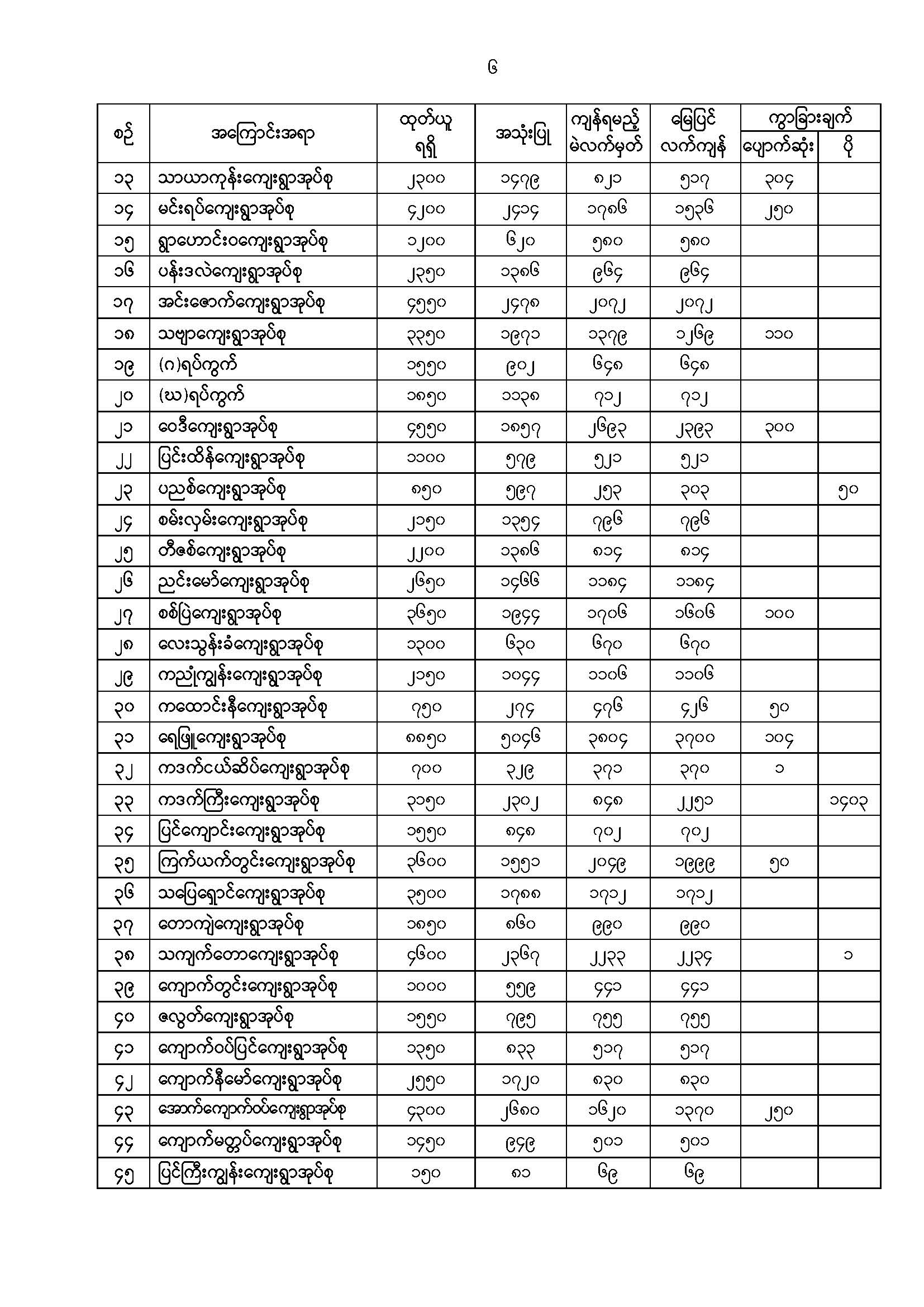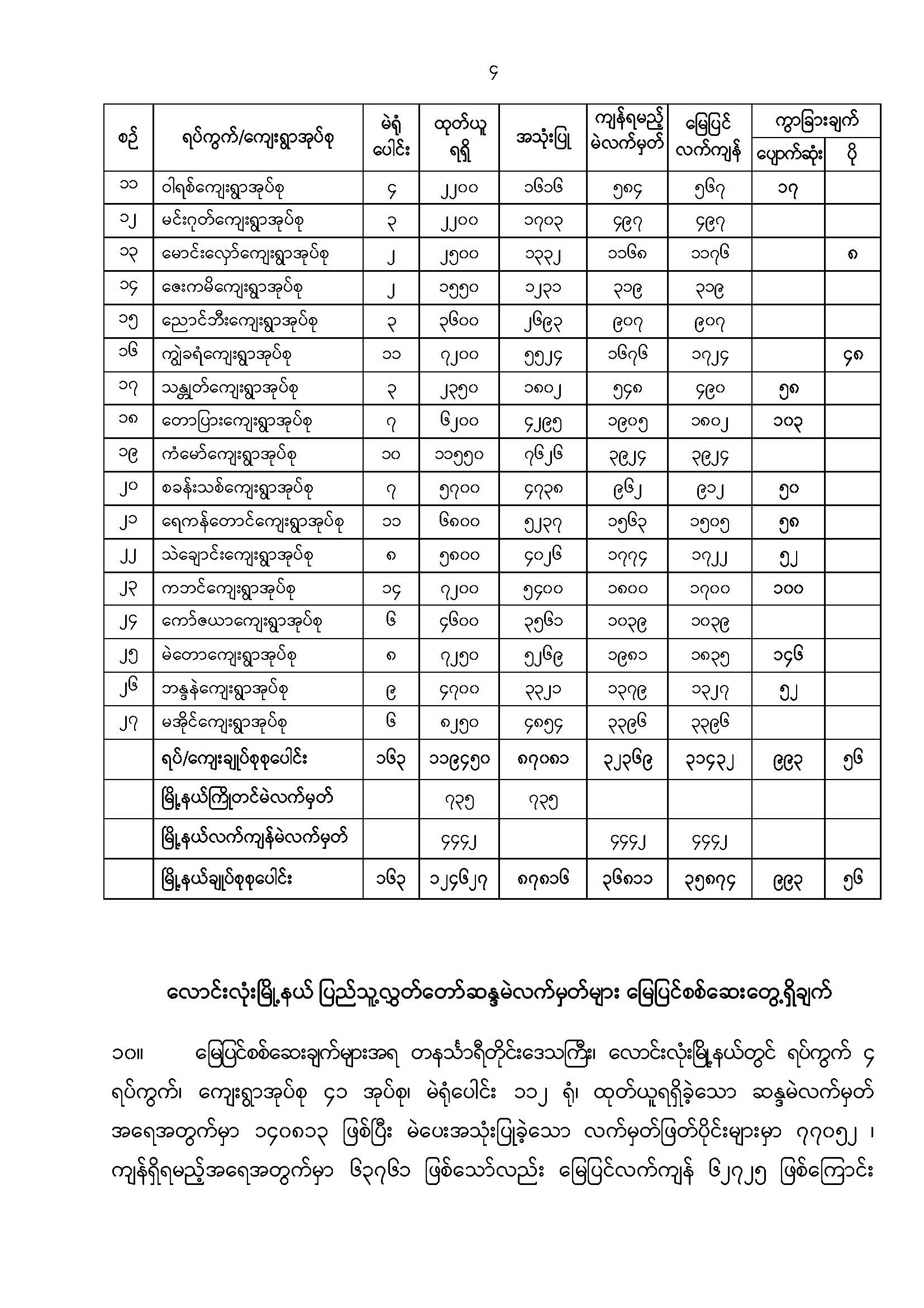 ဦးစီးဌာနနှင့် လုပ်ငန်းများ၏ ကြေညာချက်များ