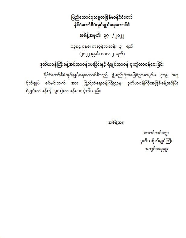 ဝန်ကြီးဌာန ကြေညာချက်များ