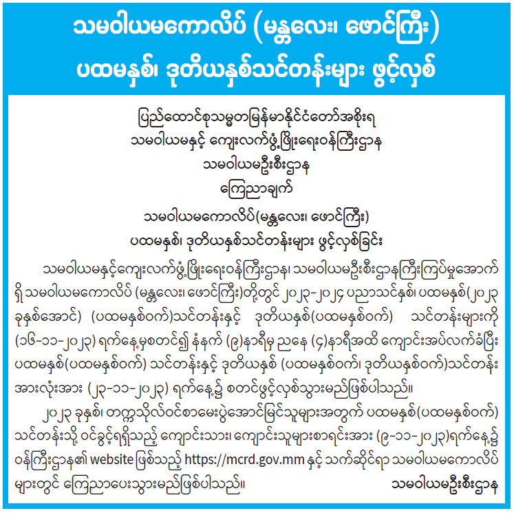 သမဝါယမကောလိပ် (မန္တလေး၊ ဖောင်ကြီး) ပထမနှစ်၊ ဒုတိယနှစ်သင်တန်းများ ဖွင့်လှစ် 11/10/2023 သမဝါယမကောလိပ် (မန္တလေး၊ ဖောင်ကြီး) ပထမနှစ်၊ ဒုတိယနှစ်သင်တန်းများ ဖွင့်လှစ်