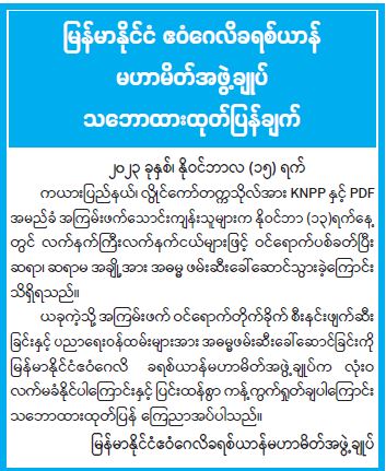 မြန်မာနိုင်ငံ ဧဝံဂေလိခရစ်ယာန်မဟာမိတ်အဖွဲ့ချုပ် သဘောထားထုတ်ပြန်ချက်