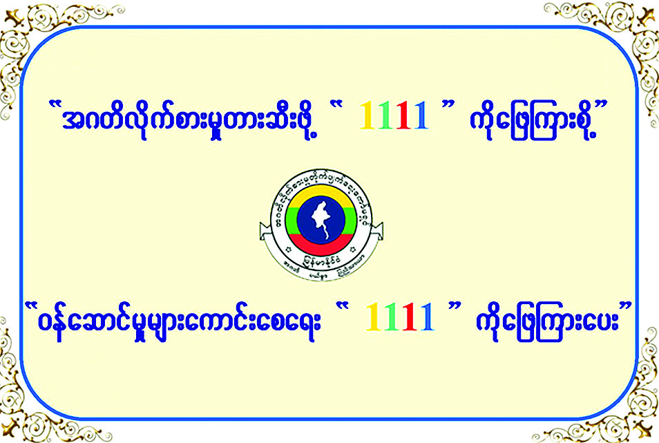 ၄။ သို့ဖြစ်ပါ၍ ပြည်သူလူထုအနေဖြင့် ကော်မရှင်နှင့် ပြည်ထောင်စုဝန်ကြီးဌာန/ အဖွဲ့အစည်းများရှိ အဂတိလိုက်စားမှုတားဆီးကာကွယ် ရေးအဖွဲ့များက Short Code “1111” ဖြင့် SMS ပေးပို့မေးမြန်းလိုက်သော မေးခွန်းများကို ပြန်လည်ဖြေကြားပေးခြင်းသည် အဂတိလိုက်စားမှု တားဆီးကာကွယ်ရေးလုပ်ငန်းများတွင် တစ်ဖက်တစ်လမ်းမှ ပါဝင်ဆောင်ရွက်ခြင်းဖြစ်သဖြင့် အများပြည်သူထံမှ တုံ့ပြန်မှုရယူခြင်းအစီအစဉ်ကို အတူတကွ ပူးပေါင်းပါဝင်ဆောင်ရွက်စေလိုပါကြောင်း အသိပေးနှိုးဆော်တင်ပြအပ်ပါသည်။