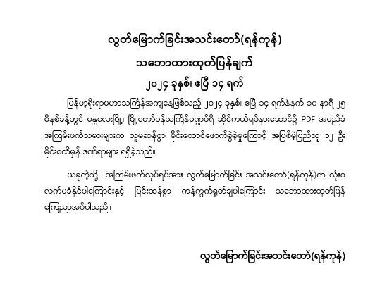 လွတ်မြောက်ခြင်းအသင်းတော် (ရန်ကုန်) သဘောထားထုတ်ပြန်ချက်