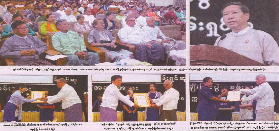 ကမ္ဘာ့တက္ကသိုလ်များ အဆင့်သတ်မှတ်ပေးရာတွင် (World University Ranking) တက္ကသိုလ် တစ်ခု၏ သုတေသန နှင့်ဖွံ့ဖြိုးမှု လုပ်ငန်းများသည် အဓိကအခန်းကဏ္ဍမှ ပါဝင်လျက်ရှိသည်ကို ဖတ်ရှုလေ့လာခဲ့ရပါသည်။ သို့ဖြစ်ပါ၍ မိမိတို့ ရန်ကုန်တက္ကသိုလ်၏ အဆင့်ပိုမိုမြင့်မားလာစေရန်အတွက် စီမံကိန်းများချမှတ်ရေးဆွဲရာတွင် တက္ကသိုလ်များ၏ သုတေသနလုပ်ငန်းရပ်များ ယခုထက် ပိုမိုတိုးမြင့်လာစေရေးကို အလေးထားဆောင်ရွက်ပေးရန် လိုအပ်သည်ဟု ထင်မြင်မိပါသည်။ လက်ရှိတက္ကသိုလ် အသီးသီး၏ သုတေသနလုပ်ငန်းရပ်များ ဆောင်ရွက်နေမှုနှင့် ပတ်သက်၍ တင်ပြရမည်ဆိုလျှင် ပညာရေးဝန်ကြီးဌာနသည် မြန်မာနိုင်ငံ ဝိဇ္ဇာနှင့် သိပ္ပံပညာရှင် အဖွဲ့ကို ၁၉၉၁ ခုနှစ်တွင် စတင်ဖွဲ့စည်းခဲ့ပြီးနောက် သုတေသနစာတမ်းဖတ်ပွဲများကို (၁၈)ကြိမ် ကျင်းပခဲ့ပြီး၊ ၎င်း(၁၈) နှစ်တာအချိန်ကာလအတွင်း တက္ကသိုလ် အသီးသီးတို့မှ ပညာရှင်များက သုတေသနစာတမ်းစုစုပေါင်း (၃၅၈၂)စောင် တင်သွင်းဖတ်ကြားနိုင်ခဲ့ပါသည်။ ထိုသို့ ဆောင်ရွက် နိုင်ခဲ့ခြင်းကြောင့် သုတေသနအရည်အသွေးများ တိုးမြင့်လာသကဲ့သို့ မိမိတို့ ပညာရပ် နယ်ပယ်အသီးသီးတို့တွင်လည်း သုတေသနလုပ်ငန်းရပ်များကို ယခင်ကထက်ပိုမို ထိရောက် အောင်မြင်စွာ ဆောင်ရွက် နေကြပြီဖြစ်ကြောင်း သိရှိရပါသည်။ ပညာရေးဝန်ကြီးဌာန၊ မြန်မာနိုင်ငံ ဝိဇ္ဇာနှင့် သိပ္ပံပညာရှင်အဖွဲ့က ချီးမြှင့်သည့် (၁၈) ကြိမ်မြောက် ၂၀၁၇ ခုနှစ်အတွက် အကောင်းဆုံး သုတေသနစာတမ်းရှင်များအား ဂုဏ်ပြုချီးမြှင့်သည့် အခမ်းအနားကို ၂၀၁၈ ခုနှစ်၊ နိုဝင် ဘာလ(၉)ရက်နေ့တွင် ရန်ကုန်တက္ကသိုလ်ဝိဇ္ဇာခန်းမ၌ ကျင်းပခဲ့ရာ ပညာရေးဝန်ကြီးဌာန၊ ပြည်ထောင်စုဝန်ကြီး ဒေါက်တာ မျိုးသိမ်းကြီးကိုယ်တိုင် တက်ရောက်ချီးမြှင့် အမှာစကား ပြောကြားခဲ့ပါသည်။