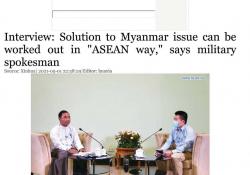 မြန်မာနိုင်ငံအရေးကို အရှေ့တောင်အာရှနိုင်ငံများအသင်းအဖွဲ့ (အာဆီယံ) ၏ နည်းလမ်းဖြင့် ဖြေရှင်းနိုင်ကြောင်း နိုင်ငံတော်စီမံအုပ်ချုပ်ရေးကောင်စီနှင့် မြန်မာ့တပ်မတော်မှ ပြောရေးဆိုခွင့်ရှိသူ ဗိုလ်ချုပ်ဇော်မင်းထွန်းက ဆင်ဟွာ (Xinhua) သတင်းဌာနနှင့် မကြာသေးမီကပြုလုပ်သော တွေ့ဆုံမေးမြန်းခန်းတွင် ပြောသည်။