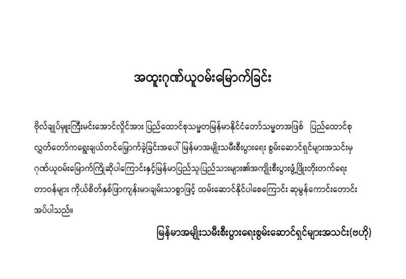 ၂၀၂၆ ခုနှစ်၊ ဧပြီလ ၃ ရက်တွင် ကျင်းပသည့် နိုင်ငံတော်သမ္မတ ရွေးချယ်တင်မြှောက်ပွဲ၌ ပြည်ထောင်စုလွှတ်တော်ကိုယ်စားလှယ် အားလုံးပါဝင်သော နိုင်ငံတော်သမ္မတ ရွေးချယ်တင်မြှောက်ရေးအဖွဲ့က ရွေးကောက်ခံပြည်သူ့လွှတ်တော်ကိုယ်စားလှယ်များ အစုအဖွဲ့မှ ဒုတိယသမ္မတအဖြစ် ရွေးချယ်တင်မြှောက်ထားသော ဗိုလ်ချုပ်မှူးကြီး မင်းအောင်လှိုင်အား နိုင်ငံတော်သမ္မတအဖြစ် ရွေးချယ်တင်မြှောက်ခြင်းခံရသည့်အတွက် မြန်မာအမျိုးသမီးစီးပွားရေးစွမ်းဆောင်ရှင်များအသင်း (ဗဟို)၊ မြန်မာနိုင်ငံအမျိုးသမီးအားကစားအဖွဲ့ချုပ်၊ မြန်မာနိုင်ငံရိုးရာပန်းပညာရှင်များအစည်းအရုံး၊ မြန်မာ-မွတ်စလင် စီးပွားရေးလုပ်ငန်းရှင်များအသင်း (MMBEA) နှင့် ရန်ကုန်တိုင်းဒေသကြီး၊ ဇဖာရ်ရှားဂူဗိမ္မာန်ကြီးကြပ်ရေးကော်မတီတို့က အထူးဂုဏ်ယူဝမ်းမြောက်ကြောင်း ကြေညာချက်များ ထုတ်ပြန်ခဲ့ကြသည်။