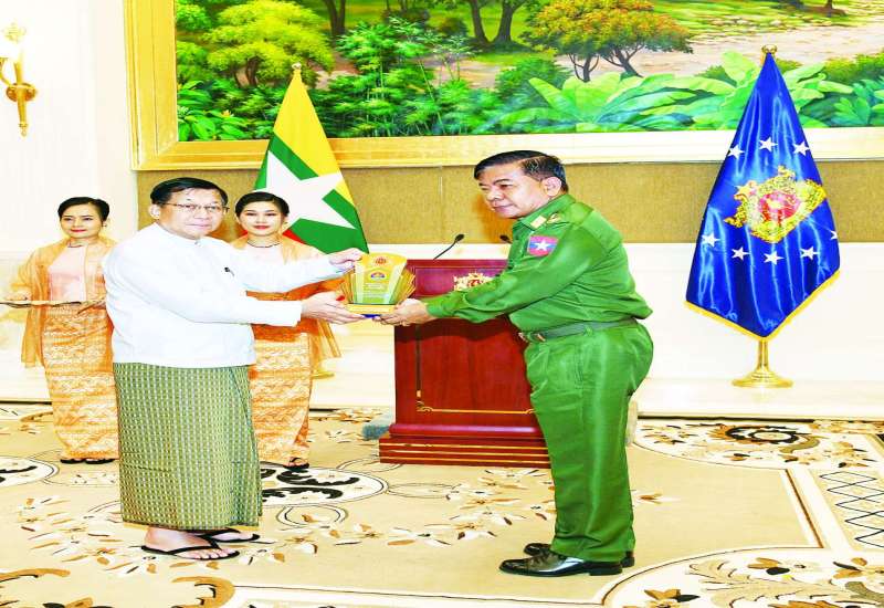 ပြည်ထောင်စုသမ္မတမြန်မာနိုင်ငံတော် ရွေးကောက်တင်မြှောက်ခြင်းခံရသော သမ္မတက တာဝန်ကျေပွန်စွာ ထမ်းဆောင်ခဲ့သည့် ပြည်ထောင်စုဝန်ကြီးနှင့် တပ်မတော်အရာရှိကြီးများ၊ မိုခါမုန်တိုင်းအပါအဝင် သဘာဝဘေးဒဏ်ပြန်လည်ထူထောင်ရေးလုပ်ငန်းများတွင် တာဝန်ကျေပွန်စွာ ထမ်းဆောင်ခဲ့ကြသည့် အရာရှိကြီးများအား ဂုဏ်ပြုအထိမ်းအမှတ်လက်ဆောင်များ ချီးမြှင့်ခြင်းအခမ်းအနားကို ယနေ့မွန်းလွဲပိုင်းတွင် အမျိုးသားကာကွယ်ရေးနှင့် လုံခြုံရေးကောင်စီဥက္ကဋ္ဌရုံး၊ Banquet Hall ၌ ကျင်းပပြုလုပ်ရာ ရွေးကောက်တင်မြှောက်ခြင်းခံရသော သမ္မတ နိုင်ငံတော်လုံခြုံရေးနှင့် အေးချမ်းသာယာရေးကော်မရှင်ဥက္ကဋ္ဌ ဗိုလ်ချုပ်မှူးကြီး မင်းအောင်လှိုင် တက်ရောက်အမှာစကားပြောကြားပြီး ဂုဏ်ပြုအထိမ်းအမှတ်လက်ဆောင်များ ချီးမြှင့်ပေးအပ်သည်။