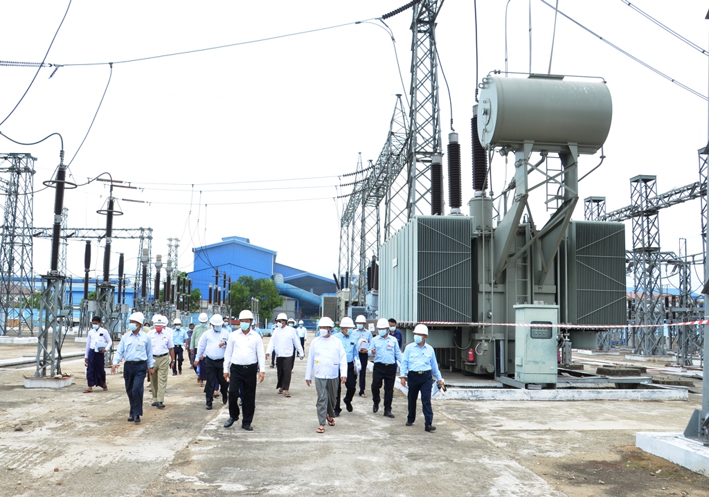 ယင်းနောက် ပြည်ထောင်စုဝန်ကြီးနှင့်အဖွဲ့သည် လျှပ်စစ်ဓာတ်အားပို့လွှတ်ရေးနှင့် ကွပ်ကဲ ရေးဦးစီးဌာန၊ မြောင်းတကာပင်မ ဓာတ်အားခွဲရုံသို့ရောက်ရှိပြီး ဓာတ်အားခွဲရုံအတွင်းရှိ ဓာတ်အား ထိန်းချုပ်ခန်းအတွင်း ဓာတ်အားဖြန့်ဖြူးပေးနေမှု၊ Switch Yard အတွင်း တည်ဆောက်လျက်ရှိ သော ၂၃၀ ကေဗွီ ရွှေတောင်-မြောင်းတကာ ဓာတ်အားလိုင်းအား ပြုပြင်တည်ဆောက်နေမှုနှင့် ၂၃၀/၆၆/၁၁ ကေဗွီ ၁၅၀ အမ်ဗွီအေ ထရန်စဖော်မာ တိုးချဲ့တပ်ဆင်နေမှု အခြေအနေတို့ကို လှည့်လည်ကြည့်ရှုစစ်ဆေးပြီး လိုအပ်သည်များကိုမှာကြားသည်။