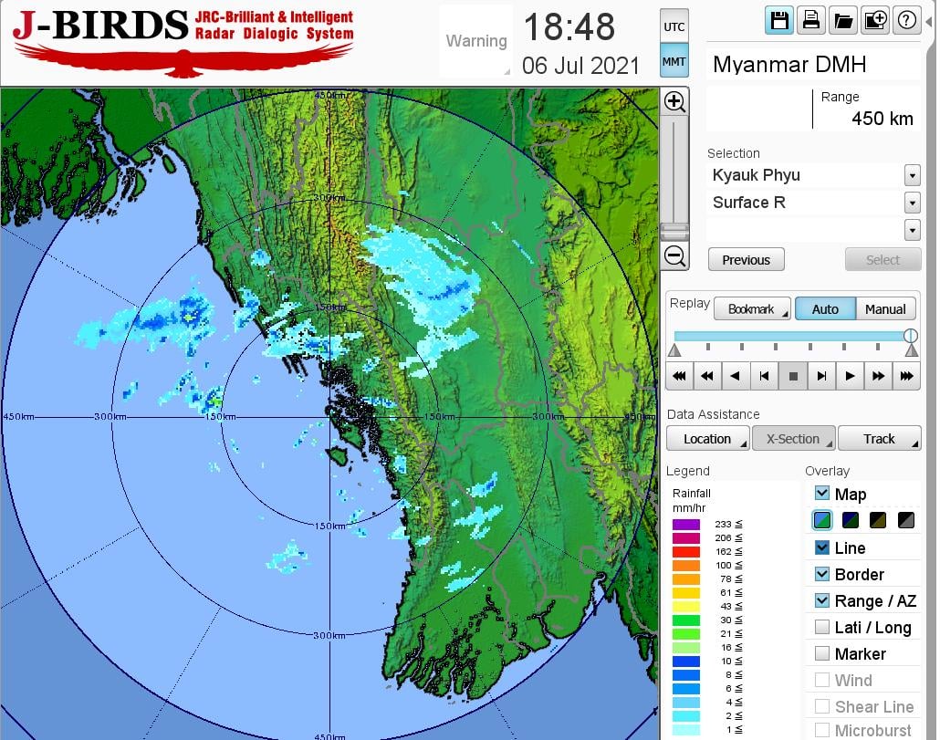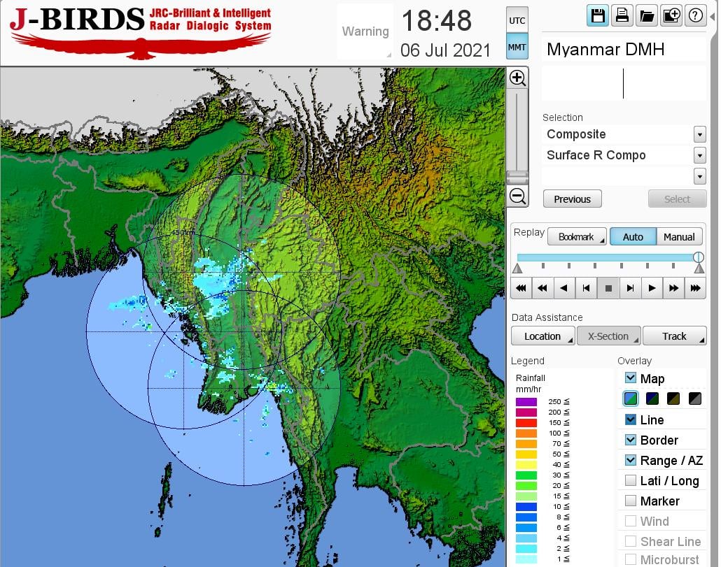 ဘင်္ဂလားပင်လယ်အော် အခြေအနေ။ ကပ္ပလီပင်လယ်ပြင်နှင့် ဘင်္ဂလားပင်လယ်အော် တောင်ပိုင်း တို့တွင် မုတ်သုံလေ အားအသင့်အတင့်မှ အားကောင်းနေပြီး၊ ကျန်ဘင်္ဂလား ပင်လယ်အော်တွင် မုတ်သုံလေ အားနည်းနေပါသည်။
