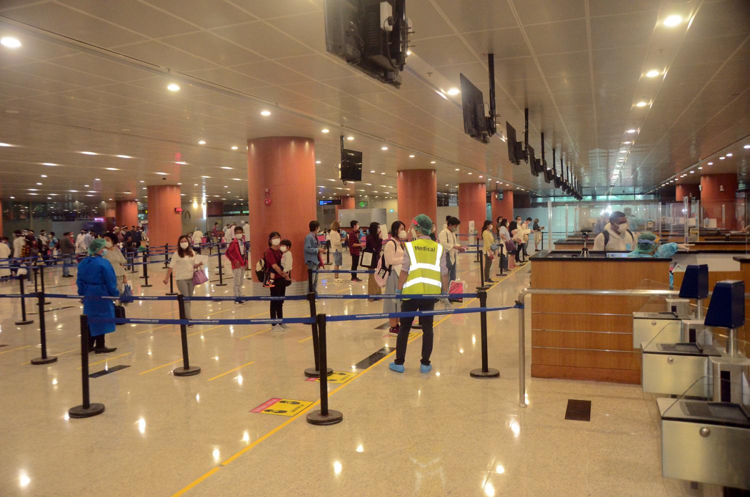 ၎င်းတို့ ရန်ကုန်အပြည်ပြည်ဆိုင်ရာလေဆိပ်သို့ ရောက်ရှိချိန်တွင် လူဝင်မှုကြီးကြပ်ရေး၊ ကျန်းမာရေးစိစစ်ရေးနှင့် (၂၁)ရက်တာ အသွားအလာ ကန့်သတ်နေထိုင်ရေးတို့ကို အလုပ်သမား၊ လူဝင်မှု ကြီးကြပ်ရေးနှင့်ပြည်သူ့ အင်အားဝန်ကြီးဌာန၊ ကျန်းမာရေးနှင့် အားကစားဝန်ကြီးဌာနနှင့် ရန်ကုန်တိုင်းဒေသကြီးအစိုးရအဖွဲ့တို့မှ သက်ဆိုင်ရာ အခန်းကဏ္ဍအလိုက် တာဝန်ယူဆောင်ရွက် ပေးခဲ့သည်။