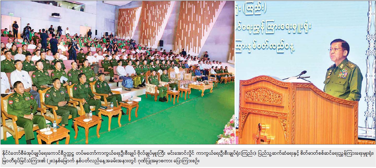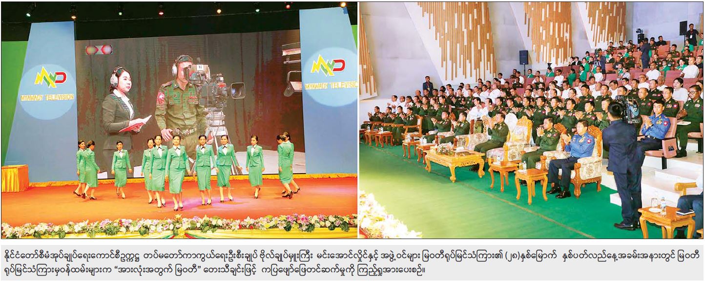 နိုင်ငံတော်စီမံအုပ်ချုပ်ရေးကောင်စီအနေဖြင့် ဖွဲ့စည်းပုံအခြေခံဥပဒေ (၂၀၀၈ ခုနှစ်) နှင့်အညီ နိုင်ငံတော်တာဝန်အရပ်ရပ်ကို ယူထားရသည့်ကာလအတွင်း ပြည်တွင်း၊ ပြည်ပ ကျင့်ဝတ်မဲ့မီဒီယာမျိုးစုံက နည်းလမ်းပေါင်းစုံနှင့် ထိုးနှက်တိုက်ခိုက်နေသည်ကို အားလုံးတွေ့ရှိကြရမည်ဖြစ်ကြောင်း၊ မိမိတို့အနေဖြင့် နိုင်ငံတော်တာဝန်ရယူခဲ့ချိန်မှ ယနေ့ထိတိုင် အမျိုးသားအကျိုးစီးပွားကိုရှေးရှုသည့် ဆောင်ရွက်ချက်များကို နေ့စဉ်ထုတ်သတင်းစာများနှင့် မြဝတီ ရုပ်မြင်သံကြားအပြင် နိုင်ငံတော်ပိုင်သတင်းဌာနကြီးများကပါ ဖော်ပြပေးလျက်ရှိကြောင်း၊ မိမိတို့အစိုးရ၏စစ်မှန်သည့် အမျိုးသားရေးစိတ်ဓာတ်အပြည့်နှင့် တိုင်းပြည်တည်ဆောက်ရေးလုပ်ငန်းများ၊ အမျိုးဘာသာသာသနာအကျိုး သယ်ပိုးမှုများ၊ ငြိမ်းချမ်းရေးဖိတ်ခေါ် ကမ်းလှမ်းချက်များကို မြဝတီ Media Group ဖြစ်သည့် သတင်းစာ၊ ရုပ်မြင်သံကြား၊ ရေဒီယို အသံလွှင့်ဌာနအသီးသီးကို ကြည့်ရှုသူတိုင်း တွေ့မြင်ကြားသိကြမည်ဖြစ်ကြောင်း။
