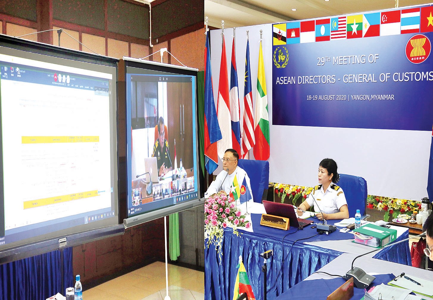 (၂၉) ကြိမ်မြောက် အာဆီယံအကောက်ခွန် ညွှန်ကြားရေးမှူးချုပ်များ အစည်းအဝေးကို Video Conferencing စနစ်ဖြင့် ဩဂုတ် ၁၈ ရက်မှ ၁၉ ရက်အထိ နှစ်ရက်တိုင် နံနက် ၈ နာရီမှ ညနေ ၅ နာရီအထိ ကျင်းပခဲ့ပြီး အစည်းအဝေးပထမနေ့တွင် အာဆီယံအတွင်းရေးမှူးချုပ်ရုံးမှ တာဝန်ရှိ သူများ၊ အာဆီယံအဖွဲ့ဝင်နိုင်ငံများမှ ညွှန်ကြားရေးမှူးချုပ်များနှင့် အကောက်ခွန် ကိုယ်စားလှယ်များ တက်ရောက် ဆွေးနွေးခဲ့ကြ ကြောင်း သိရသည်။