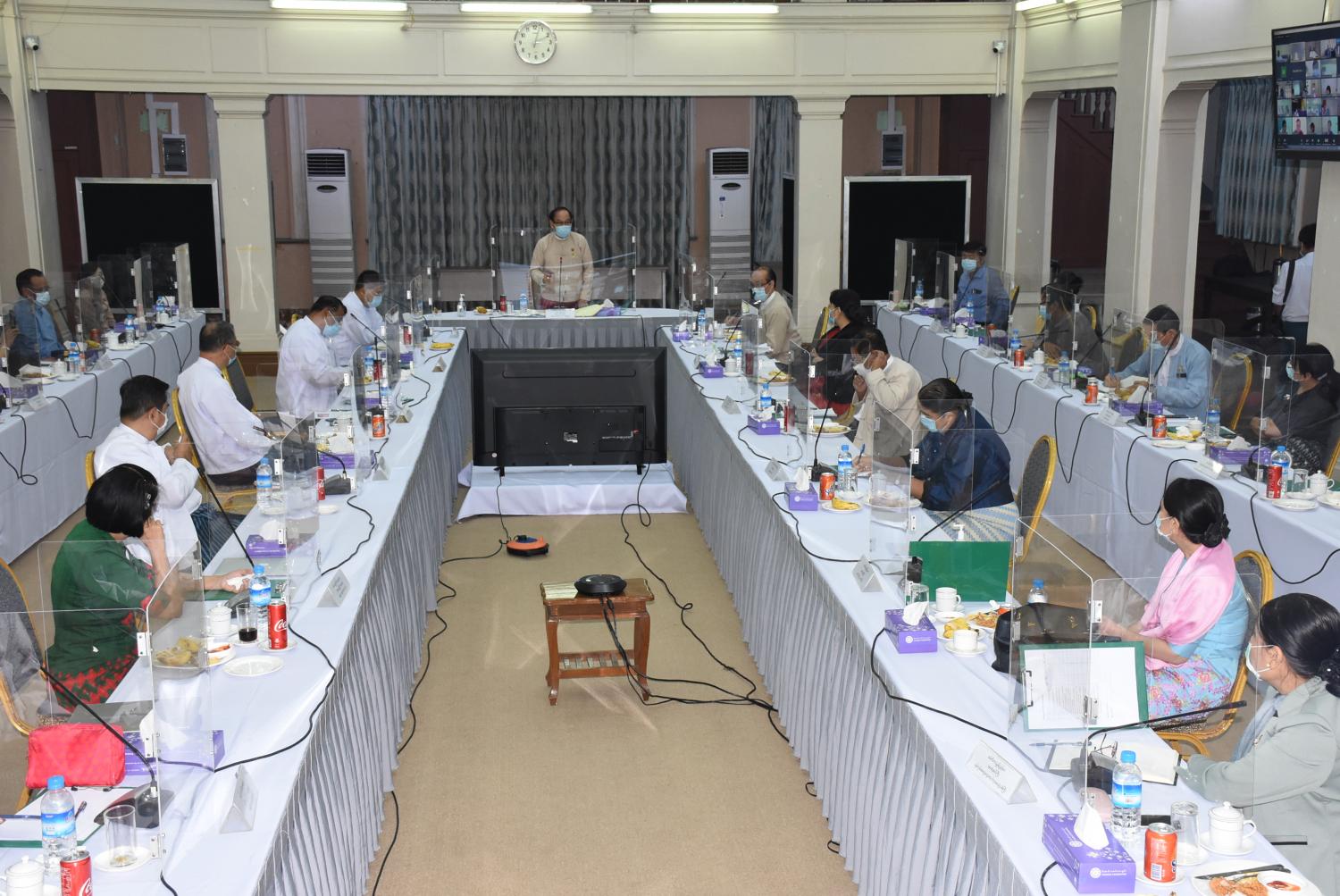 ရခိုင်ပြည်နယ်တွင် လျင်မြန်စွာကူးစက်ဖြစ်ပွားနေသော ကိုဗစ်-၁၉ ကာကွယ်ထိန်းချုပ်ရေးလုပ်ငန်းများဆွေးနွေးပြီး အရေးပေါ် အခြေအနေအမျိုးမျိုးအတွက် ဆေးရုံများ၌ ဘက်စုံအသင့်ပြင်ဆင်ထားရှိနိုင်ရေးနှင့် စနစ်တကျတုံ့ပြန်ဆောင်ရွက်နိုင်ရေး စားပွဲဝိုင်းလေ့ကျင့်ခန်းပြုလုပ်